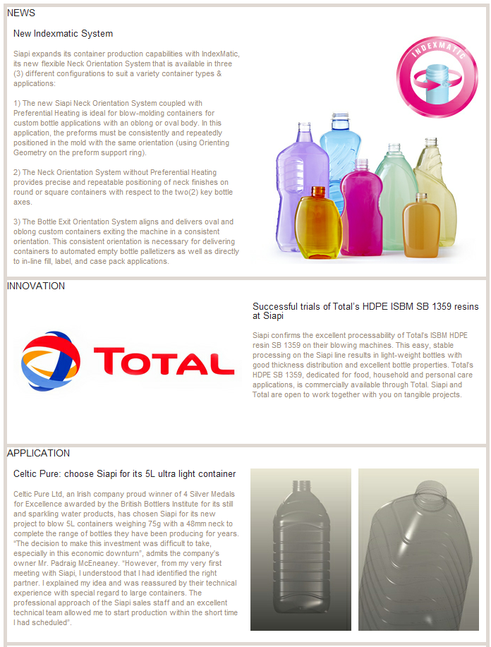 12 juni 2012 Ontwikkelingen technologie PET blaasmachines Voor de nieuwste technologische ontwikkelingen in PET blaassystemen: Siapi Nieuwsbrief Juni 2012 Dit delen: Klik om op LinkedIn te delen (Wordt in een nieuw venster geopend) LinkedIn Klik om te delen op Facebook (Wordt in een nieuw venster geopend) Facebook Klik om te delen op X (Wordt in een nieuw venster geopend) X